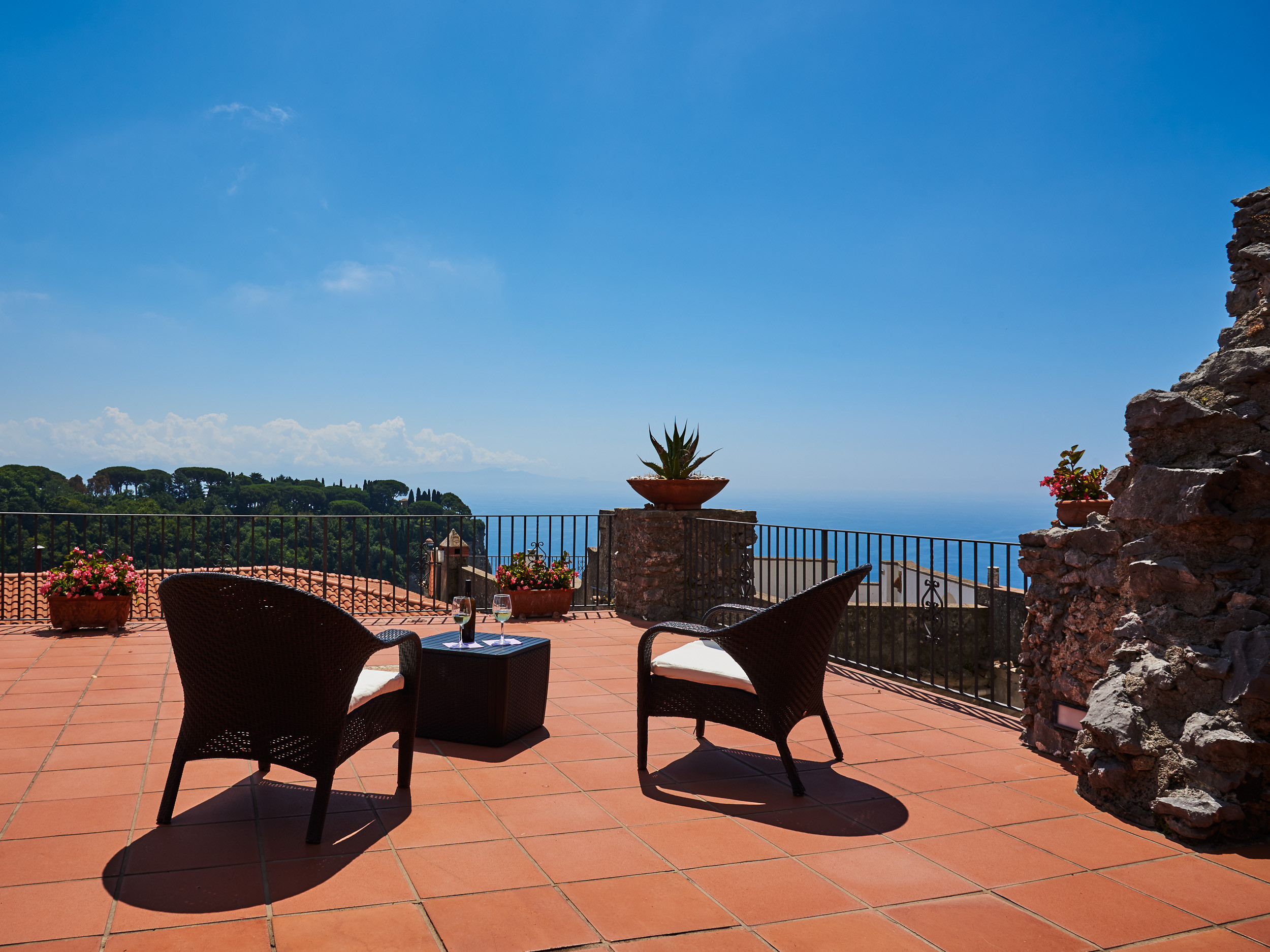 Die Villa ist von terrassierten Gärten und historischen Steinwegen umgeben und bietet eine ruhige, exklusive Atmosphäre, während die wichtigsten Sehenswürdigkeiten der Küste dennoch leicht erreichbar bleiben. Ihre erhöhte Lage garantiert Privatsphäre, Ruhe und ein faszinierendes Panorama, das sich vom Sonnenaufgang bis zum Sonnenuntergang stetig verändert.