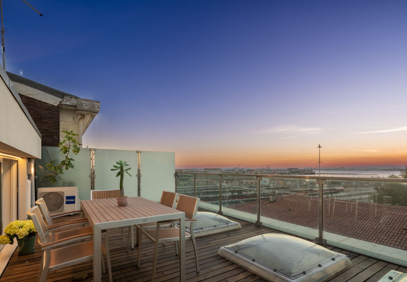 Con un diseño moderno y elegante, este luminoso apartamento es todo lo que necesitarán para una estancia relajante en el verdadero centro de Venecia. Consta de entrada, dos habitaciones dobles, baño con ducha, amplio salón con sofá cama y cocina de planta abierta y terraza habitable. El apartamento está en la tercera y última planta de un edificio histórico cerca de Campo Sant'Aponal, a dos pasos del Puente de Rialto. Está ubicado en el sestiere de San Polo a 3 minutos a pie del Puente de Rialto y su mercado, y a 10 minutos de la Plaza de San Marcos. Cerca también se encuentran las paradas de vaporetto de Rialto y San Silvestro que conectan con el Aeropuerto Marco Polo, la estación de trenes Santa Lucia y Piazzale Roma.