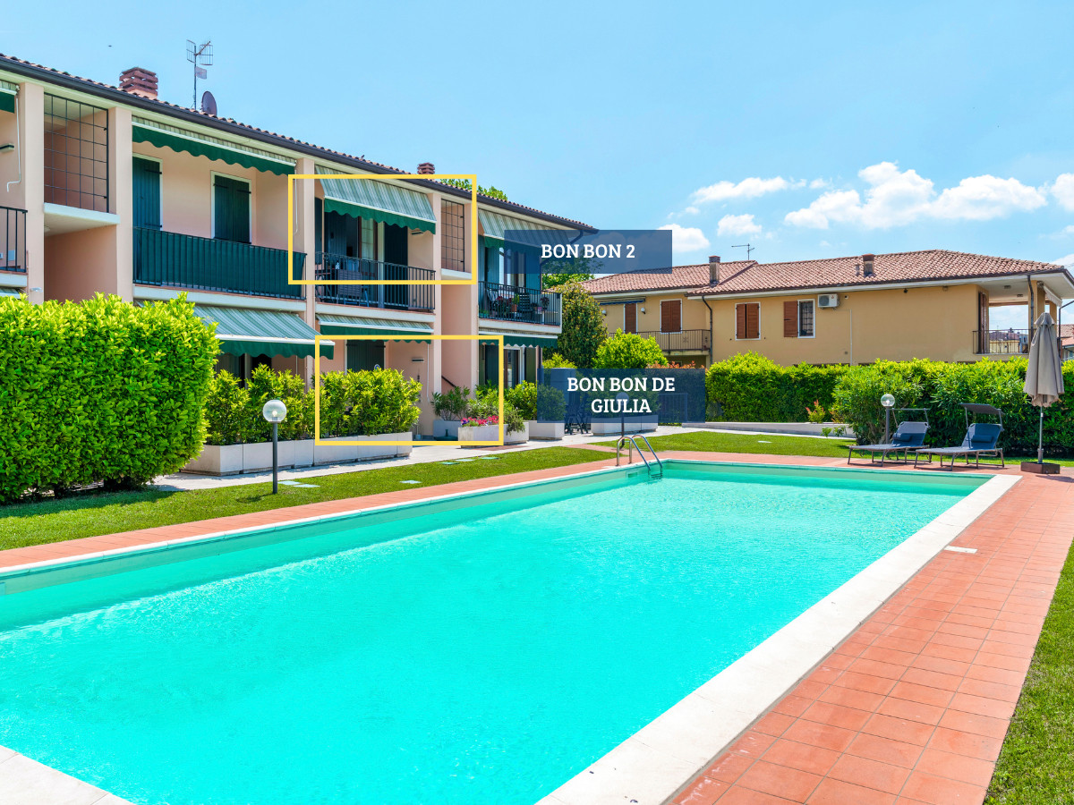 Grazioso appartamento bilocale situato al primo piano del tranquillo complesso residenziale Gardenia di Lazise, a circa 1.2 km dal centro di Lazise (15 minuti a piedi) e 1.5 km dalla spiaggia. L'intimo contesto residenziale di sole 8 unità, dispone di piscina condominiale (periodo di apertura garantito 15/05-30/09), ed ampia zona verde. L'appartamento, rinnovato nel 2025, si apre sulla zona giorno con vista sulla piscina che dispone di un balconcino arredato con tavolino, sedie e tenda da sole. Il soggiorno dispone di angolo cottura con piccolo frigorifero con cella freezer, lavastoviglie, forno a microonde, fornello a gas, bollitore, tostapane e macchina da caffè americano. Divano letto matrimoniale, wifi, tv satellitare e aria condizionata posizionata in corridoio tra la zona giorno e la camera da letto. Bagno con wc, nuova cabina doccia ed asciugacapelli. La camera matrimoniale, con accesso al terrazzino ombreggiato sul retro, dispone di spazioso guardaroba, cassaforte, ventilatore a pale a soffitto, letto matrimoniale e poltrona letto singola adatta ad ospitare un bambino. Posto auto coperto ed ombreggiato in garage e cantina con lavatrice. 2 biciclette a disposizione degli ospiti per raggiungere il centro in pochi minuti. Appartamento per non fumatori, animali domestici non ammessi.