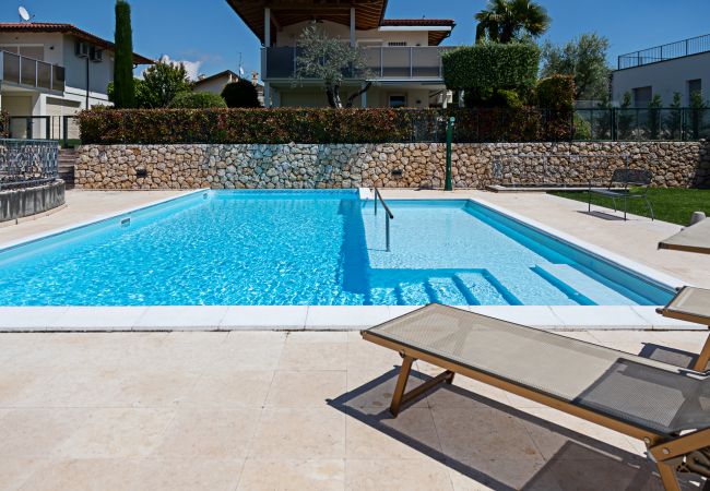 L'elegante appartamento bilocale Yin e Yang si trova a Lazise in una zona tranquilla e panoramica, al primo piano di un elegante complesso con il quale condivide una piscina (apertura garantita dal 15/05 al 30/09) e un giardino.