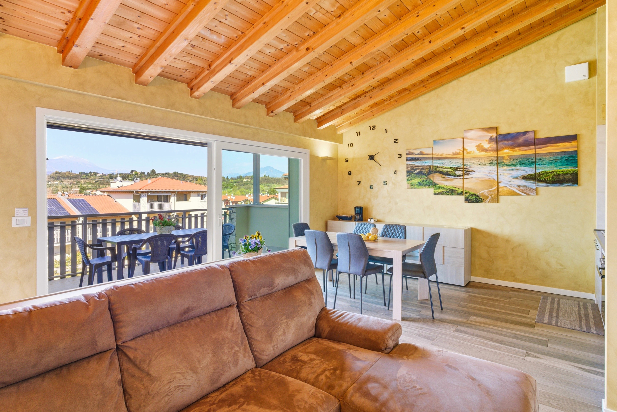 Appartamento nuovo di tre locali (apertura maggio 2022) di circa 75 mq situato a Colà di Lazise in un complesso residenziale tranquillo. L'appartamento rustico, situato al primo piano comodamente accessibile con ascensore, può ospitare fino a 5 persone e presenta un'area living luminosa con una cucina spaziosa e moderna dotata di piano a induzione, frigorifero, forno, congelatore, lavastoviglie, stoviglie/posate, utensili da cucina, macchina da caffè e tostapane. Il soggiorno è arredato con particolare attenzione ai dettagli, con un comodo divano letto che può ospitare una persona, una TV (no satellite) e l'aria condizionata. L'ampia finestra si affaccia su un'ampia terrazza coperta attrezzata con tavolo, sedie e barbecue per gustare pranzi all'aperto e un dondolo per rilassarsi nelle ore più fresche. La terrazza è sul lato opposto della piscina, per questo motivo non c'è vista sulla piscina. L'alloggio dispone di due camere da letto con armadi, la prima con un letto matrimoniale e la seconda con due letti singoli che possono essere uniti. Bagno finestrato con lavatrice, box doccia e asciugacapelli. Il complesso offre una splendida piscina con area solarium immersa nel verde (periodo di apertura garantito 01/06-30/09). Un posto auto privato è disponibile per gli ospiti. WiFi NON presente. A partire da aprile 2025, un cantiere per una nuova residenza sarà di fronte all'appartamento, quindi durante il giorno potrebbero essere uditi rumori in terrazza. Animali non ammessi. Appartamento non fumatori.