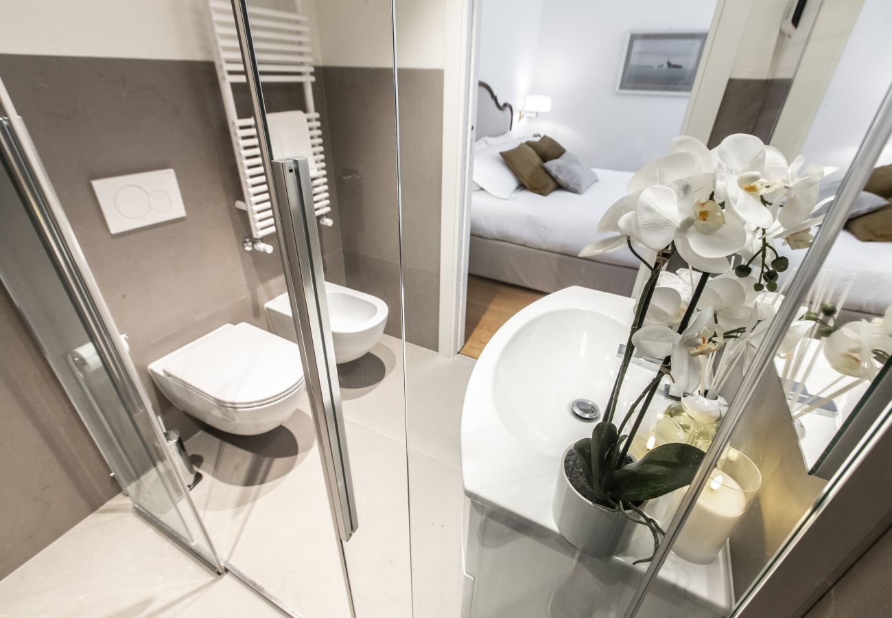 Arredato con classe e dal design pulito e moderno, questo alloggio può ospitare fino a 4 persone, composto da soggiorno luminoso con divano letto matrimoniale, cucina separata e completamente attrezzata, una camera matrimoniale e un bagno con doccia. Per il comfort dei nostri ospiti, l’appartamento dispone di aria condizionata, riscaldamento, accesso internet wi-fi, lavatrice, asciugacapelli, ferro da stiro, oltre che di tutti gli elettrodomestici necessari in cucina. Inoltre al piano terra del palazzo è presente una lavanderia ad uso comune. Nel raggio di 450m sono presenti due minimarket.