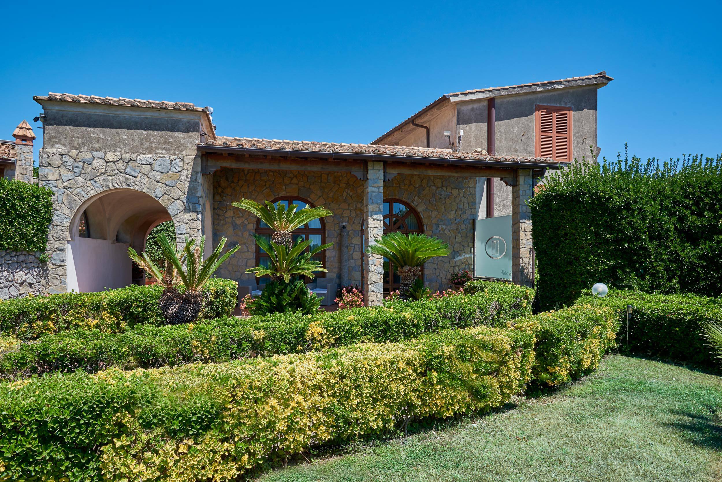 Avvolti dalla vegetazione mediterranea, gli spazi esterni rappresentano uno dei punti di forza della villa: