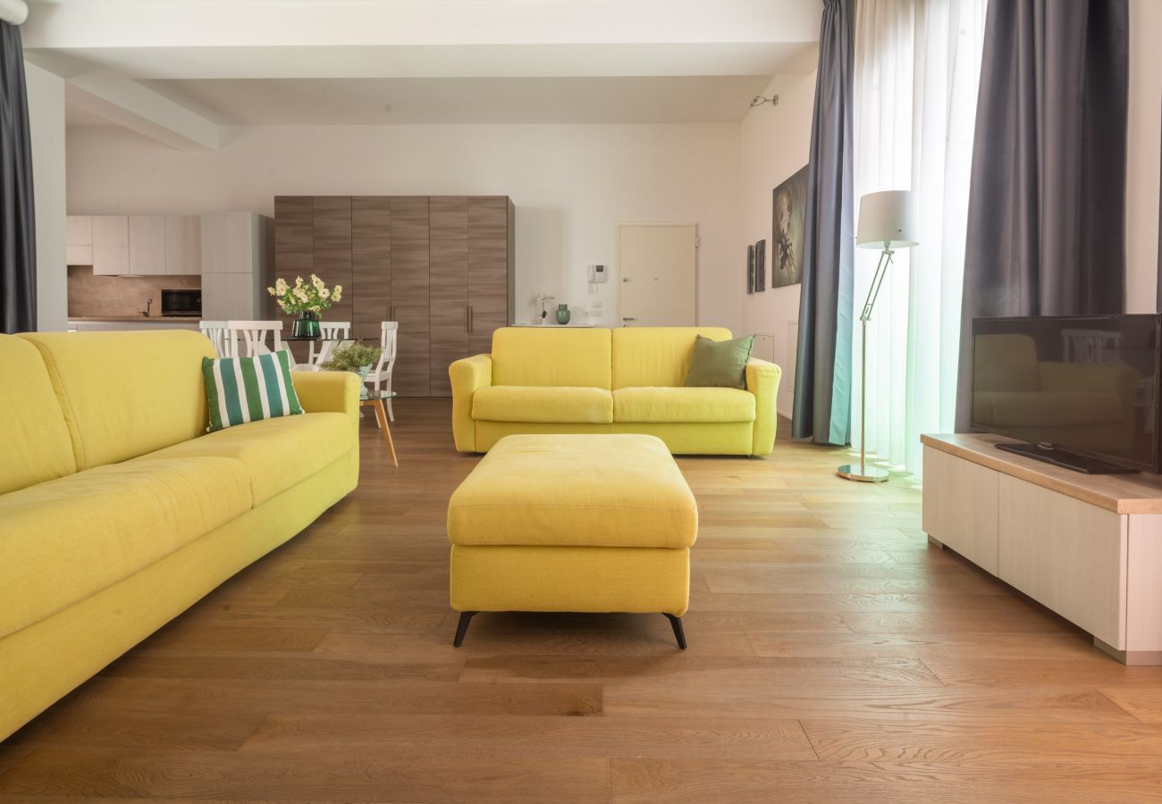 Venetian character and modernity merge to create this small two-room apartment in one of the most tranquil and residential areas of Venice: the Biennale Gardens, in the Castello district.